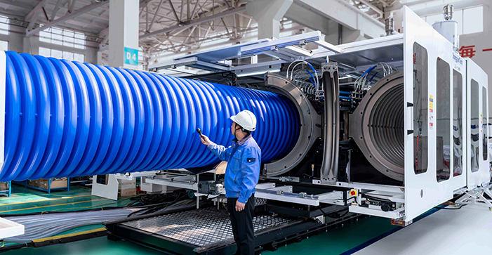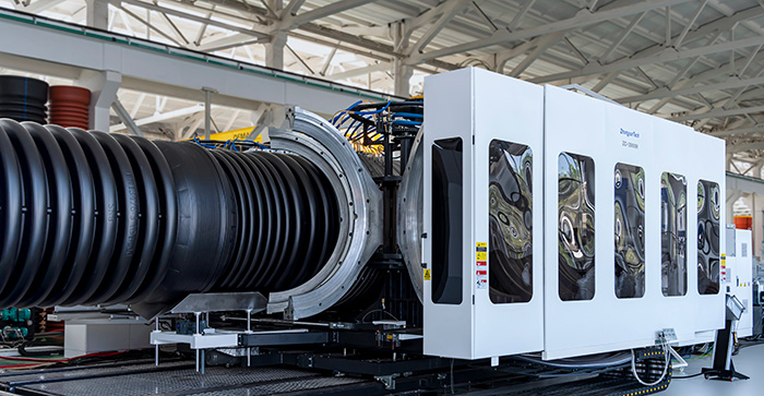 目前中国市场上运行的最大可生产OD1800mm规格双壁波纹管的生产线由中云制造(2017年交付使用)。